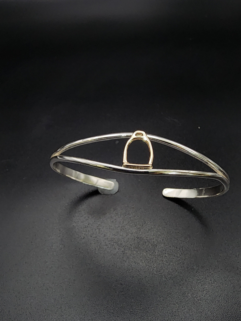 14k gold English stirrup on a sterling silver bracelet that is a small statement piece for your equestrian collection.