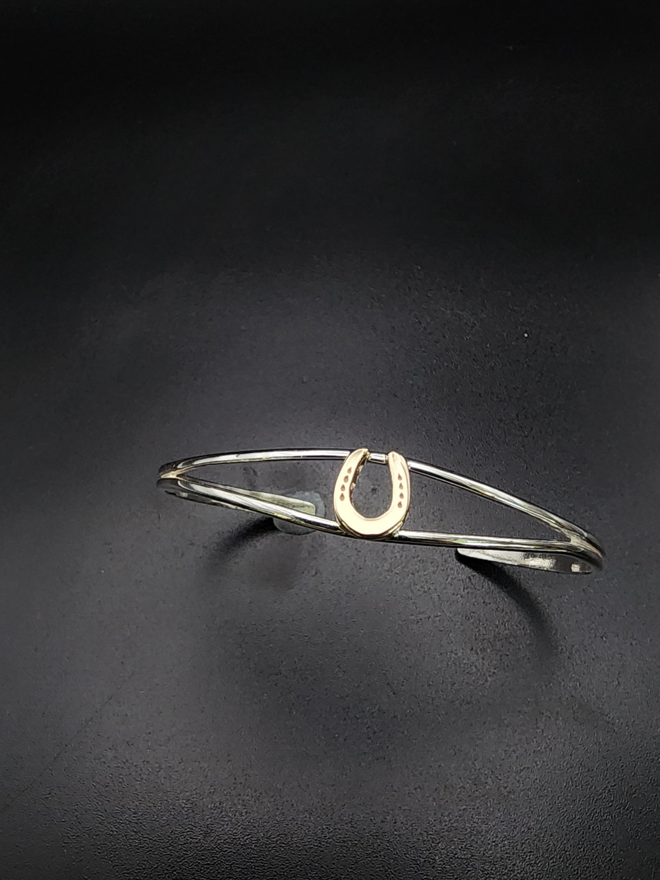 Yes we can mix our metals!! A 14k gold small horseshoe on a delicate but sturdy sterling silver bracelet. A essential for equestrian wardrobe!